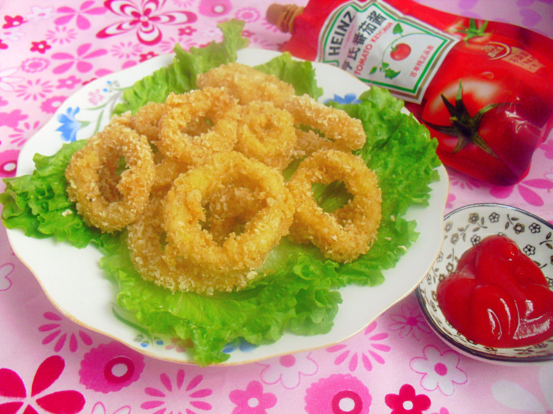 7:外酥里嫩的鱿鱼圈蘸番茄酱吃,味道那是刚刚的!