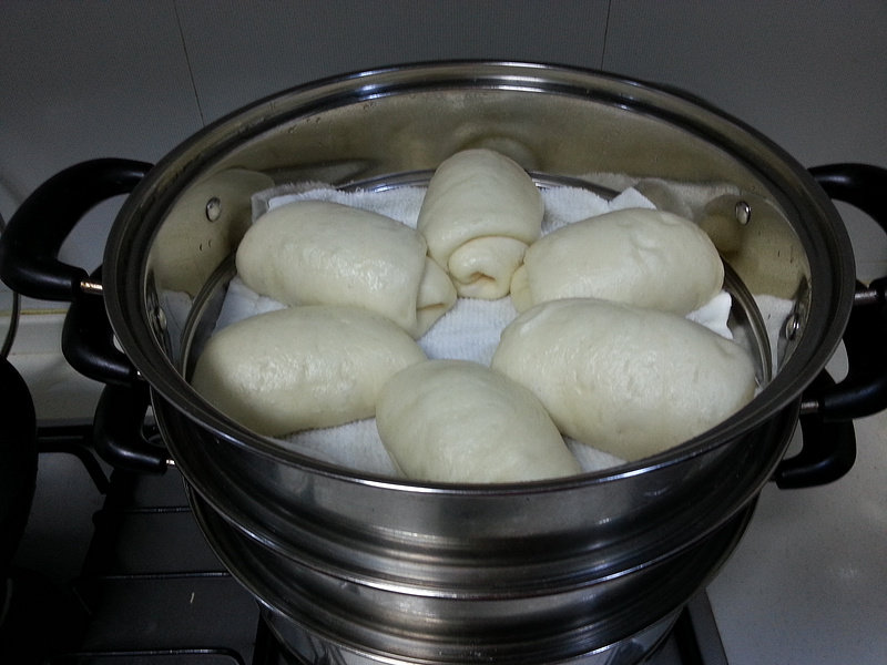 5:这是做好的生胚,锅内放入凉水,等生胚再发醒10分钟后,开火,大水烧开,上气后转中火,蒸10分钟,关火3分钟后开盖。