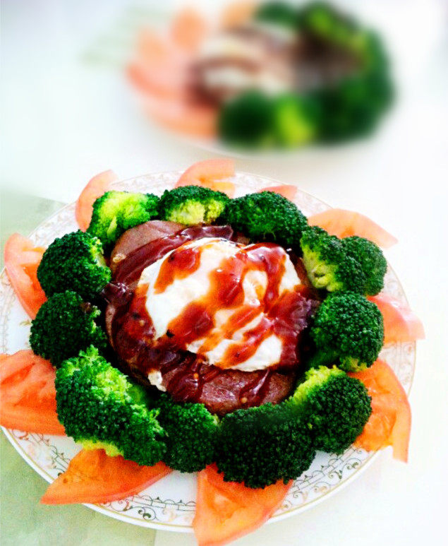 7:西兰花摆盘,西红柿围边,完成