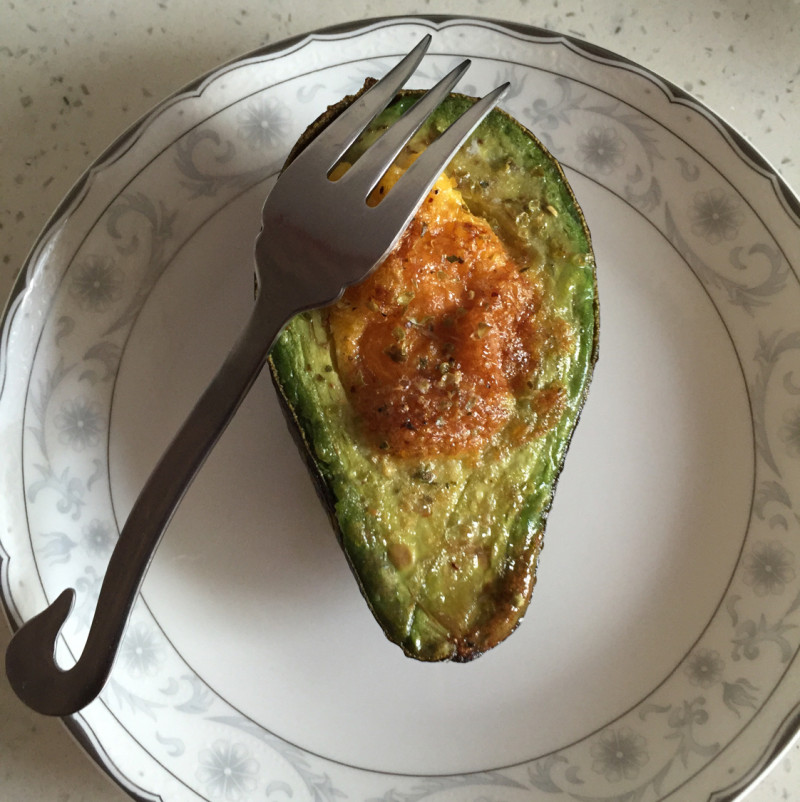 非常简单的一种做法,有鹌鹑蛋更好,每一半牛油果里打入一个鹌鹑蛋正合适,我没有就用鸡蛋。做早餐或下午茶都不错。
