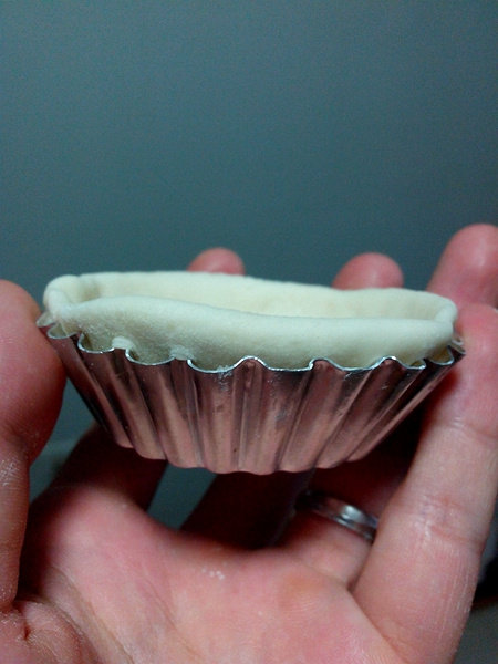 9:卷起。擀成圆形铺在蛋挞模具里就可以了。