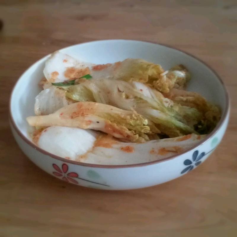 5:冷藏一夜后爽口泡菜可以开吃了。