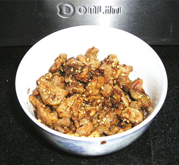 4:设置面包机程序为“翻炒干货”,默认时间为45分钟,如果想吃干一些的烤肉,可以静待程序结束,如果不想太干的话,可以在程序结束前15分钟关掉程序。5、健康美味的烤肉出炉啦