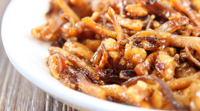 10:炒到鱿鱼干的表面有点干,有香味就可以了
