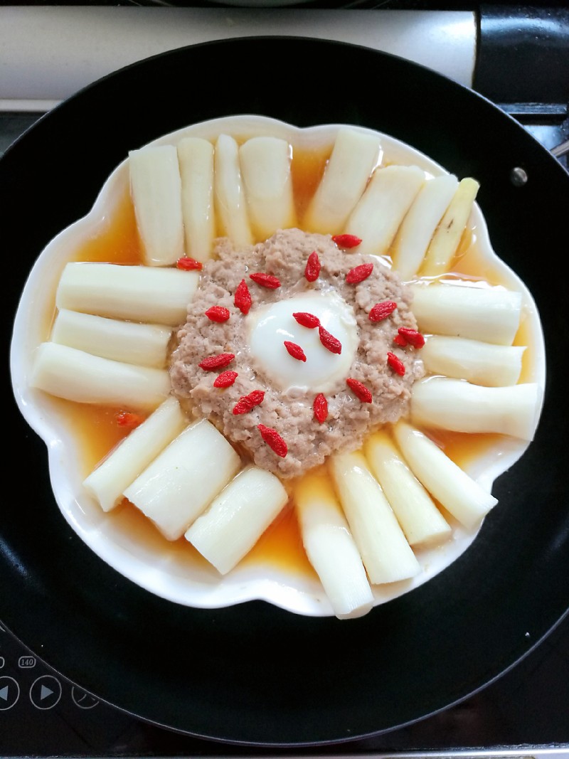 铁棍山药3根;肉末250g;土鸡蛋1个;