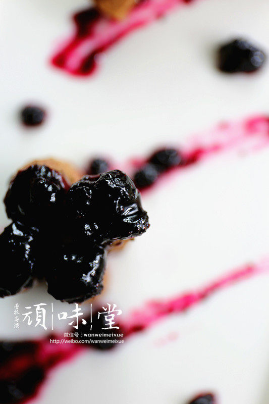 4:山药切成等大条状,淋上蓝莓调味汁即可
