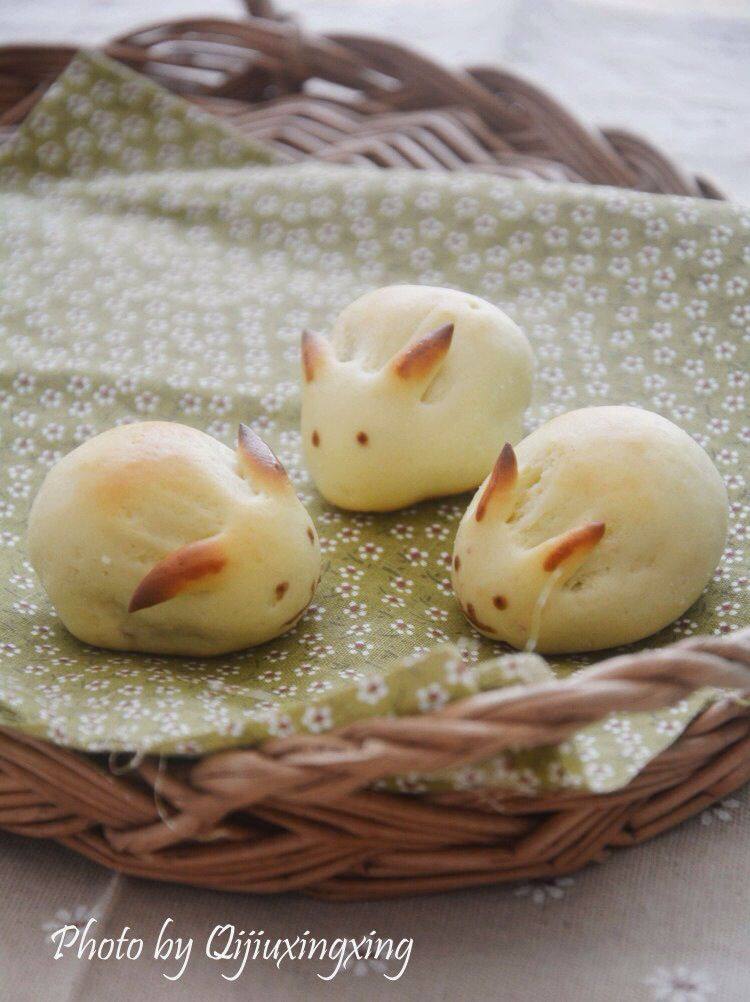 待面粉和炼乳混合后会比较粘手,放入冰箱冷藏一会儿就不会了。烘烤时注意观察,兔子表面上色很快,别烤焦了。