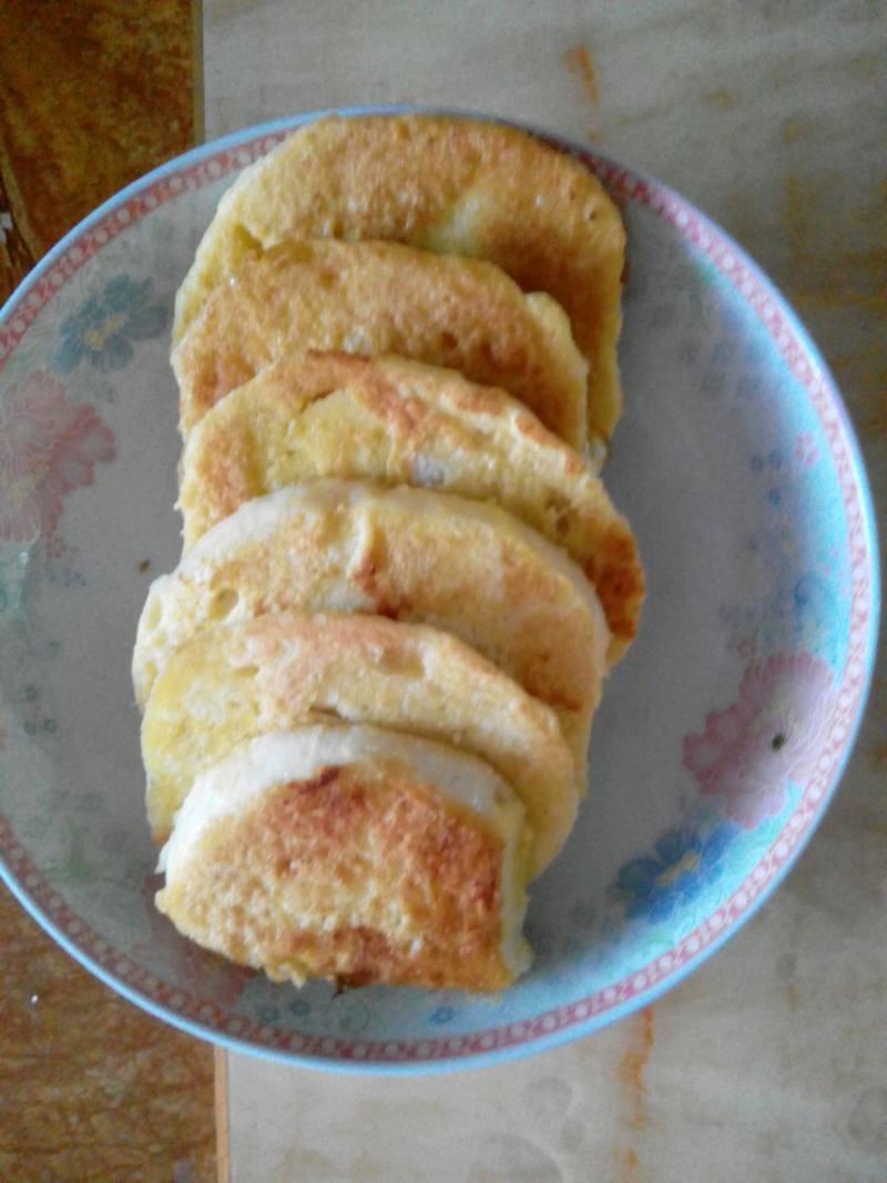 3:平底锅内热油,将切好的馒头片裹上鸡蛋放锅里煎至两面金黄即可。