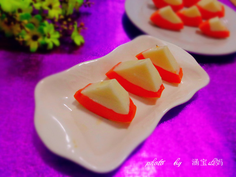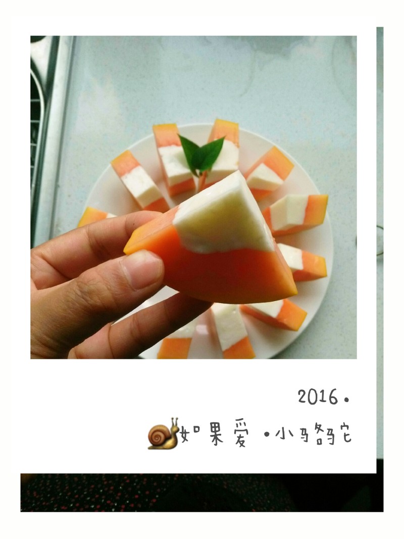 5:把木瓜放入冰箱冷藏2小时!切成小块,装盘即可!