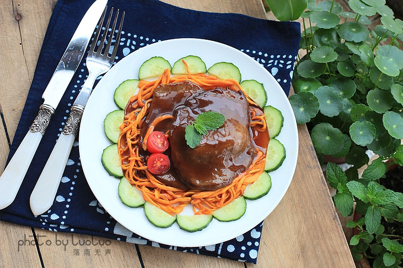 9:烧好的牛排放上面淋上酱汁即可!