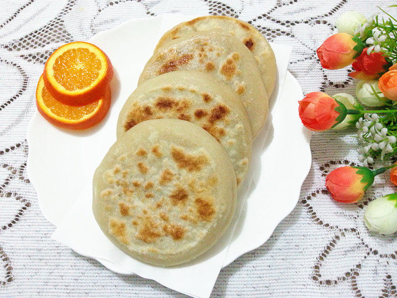 9:一面烙金黄色后,再翻面烙另一面,用手按压馅饼,已感觉有弹性,即成熟。