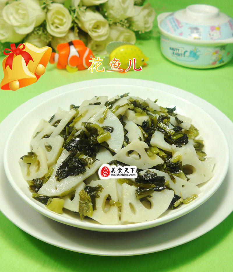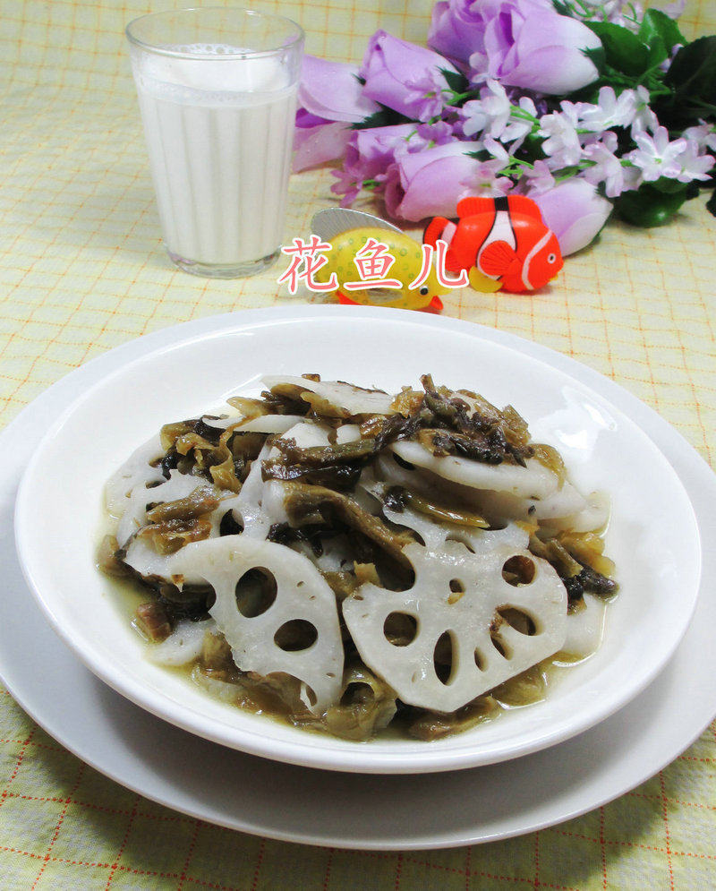 1:食材:莲藕(已清洗去皮切片)、雪菜(已清洗切碎)