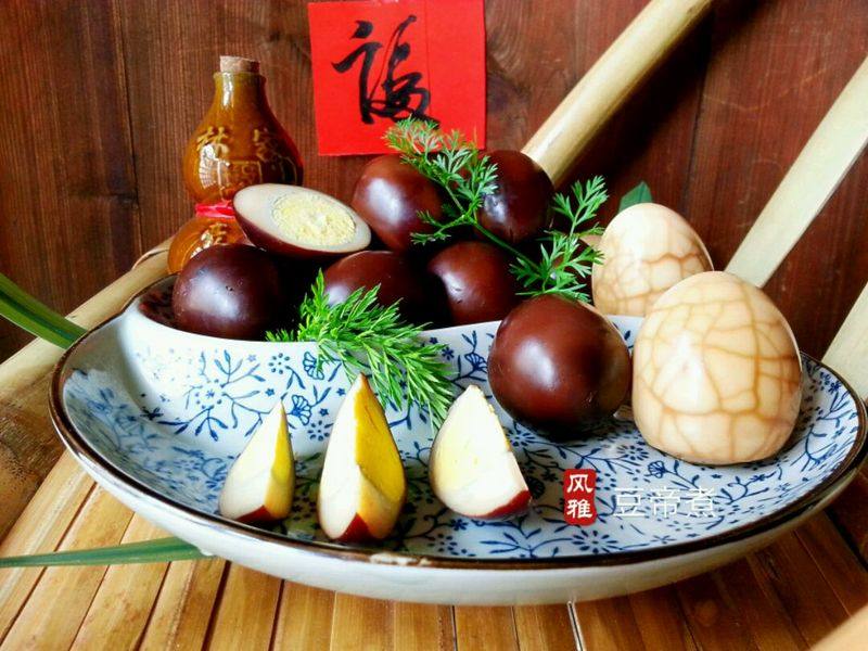 6:一级棒的蛋(不用担心不入味长时间的卤制已经入骨,切勿用刀刬蛋影响美观),欧巴另外带壳做了二个琉璃茶叶蛋当装饰。低调土豪的世界你不懂
