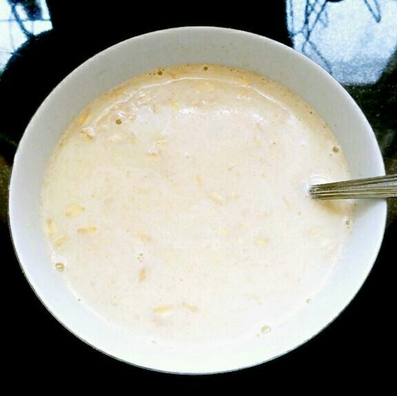 3:麦片热水泡的话,微波20秒(温水泡的话微波1.5分钟)鸡蛋剥好,对半切摆盘。