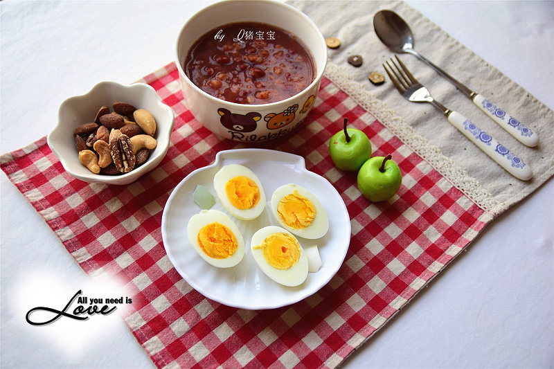 绿壳蛋1只;贵妃蛋1只;八宝粥一瓶;