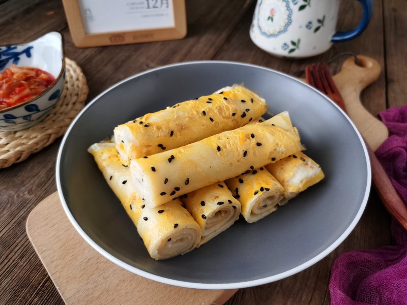 9:鸡蛋饼又薄又软,柔软有韧性,吃起来非常不错。