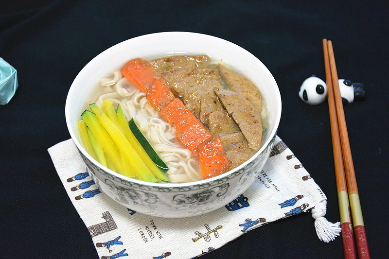 猪肝250g;面条200g;洋葱适量;胡萝卜适量;嫩南瓜适量;姜适量;