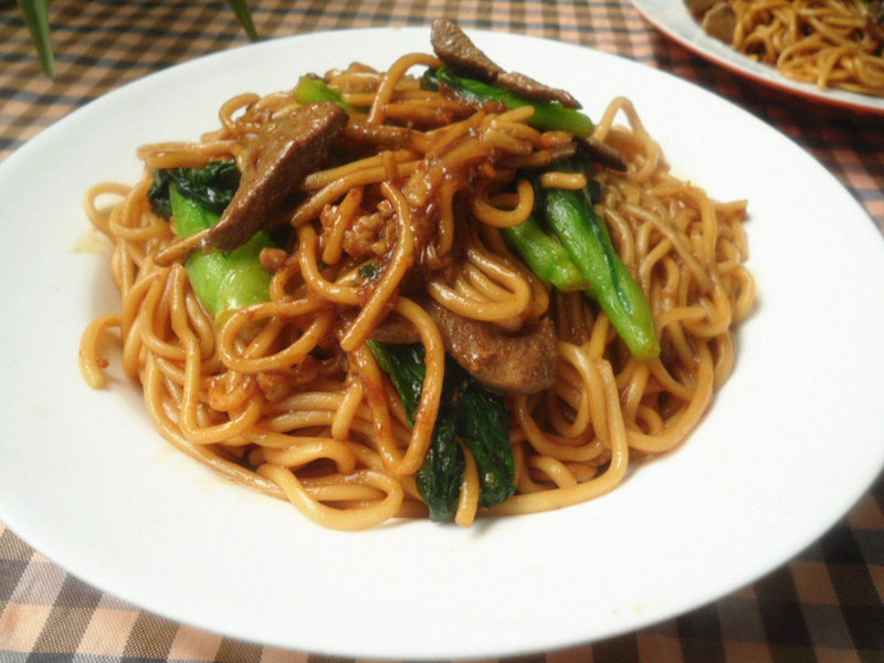 食用油适量;盐适量;青菜50g;肉末适量;猪肝适量;生抽适量;老抽适量;料酒适量;糖适量;姜适量;小葱适量;
