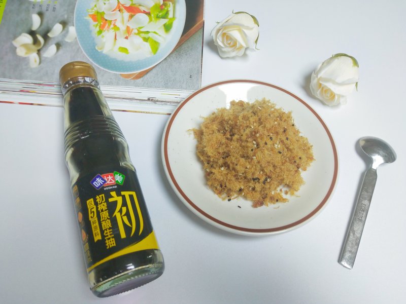 烘烤时间和温度按自己烤箱来设定,如果想酥一点,就进行三次烘烤,120°烤5-6分钟即可,千万不要烤焦了。用味达美初榨原酿生抽调制的肉松味道超赞。