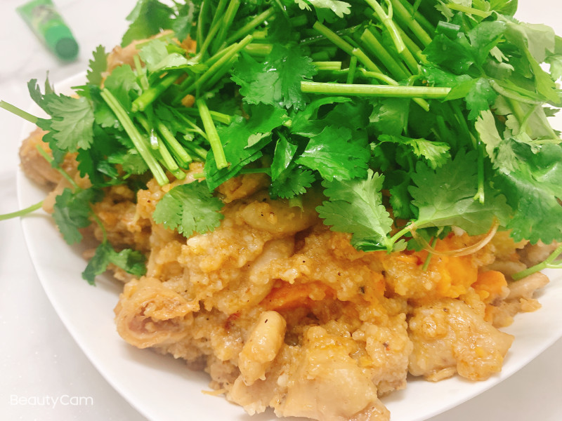 7:把所有食材和匀,连盆一起放入已经上气的蒸锅,蒸1个半小时(这里可以根据自己喜欢的口感适当延长或缩减时间)
