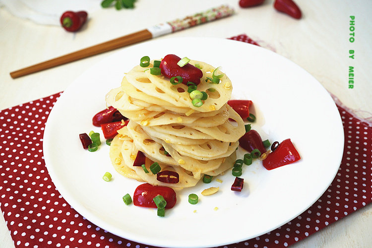 由于莲藕在不同季节里口感也稍有区别(或许是品种的不同),所以在焯水的时候,可以尝一尝口感,根据喜好适当调整焯水的时间。焯水后立刻过凉水,口感会更清脆爽口。