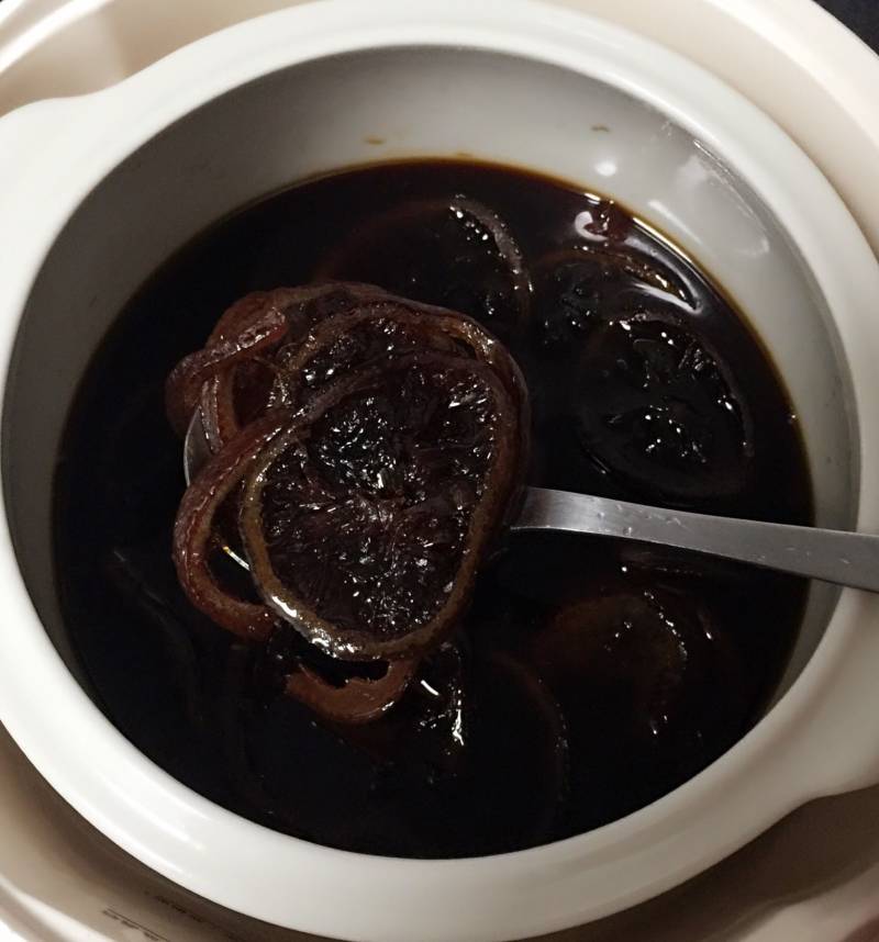6:经过12小时的炖制效果图,一定是要琥珀色的饮用才有效果。