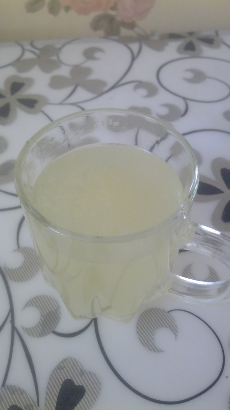 2:凉水杯里倒上水,然后放入冰糖和蜂蜜。我口味偏酸,所以只放了两大块冰糖,和一小勺蜂蜜