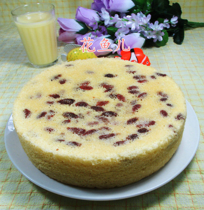 1:食材:鸡蛋4只、低筋面粉100克、枸杞30克(已泡)、绵白糖100克、黄油55克