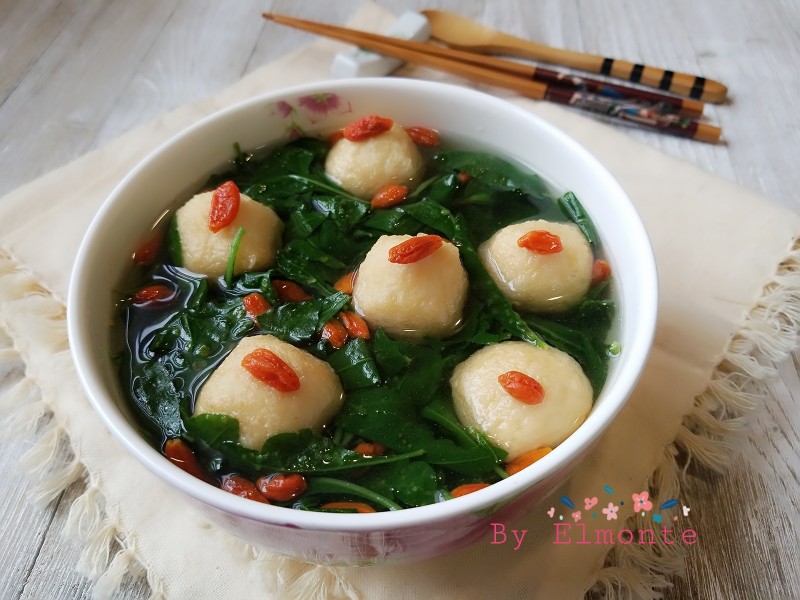 枸杞叶适量;枸杞子手抓1小把;鱼丸6粒;