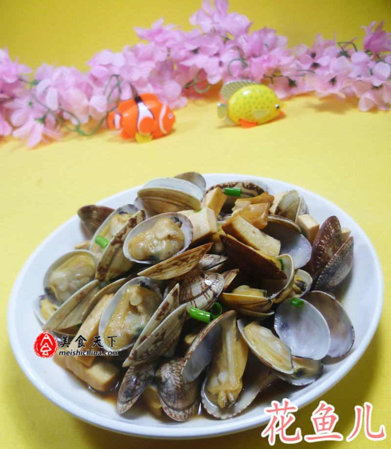 3:烧锅倒油烧热,下入已洗净的花蛤,加适量的料酒。