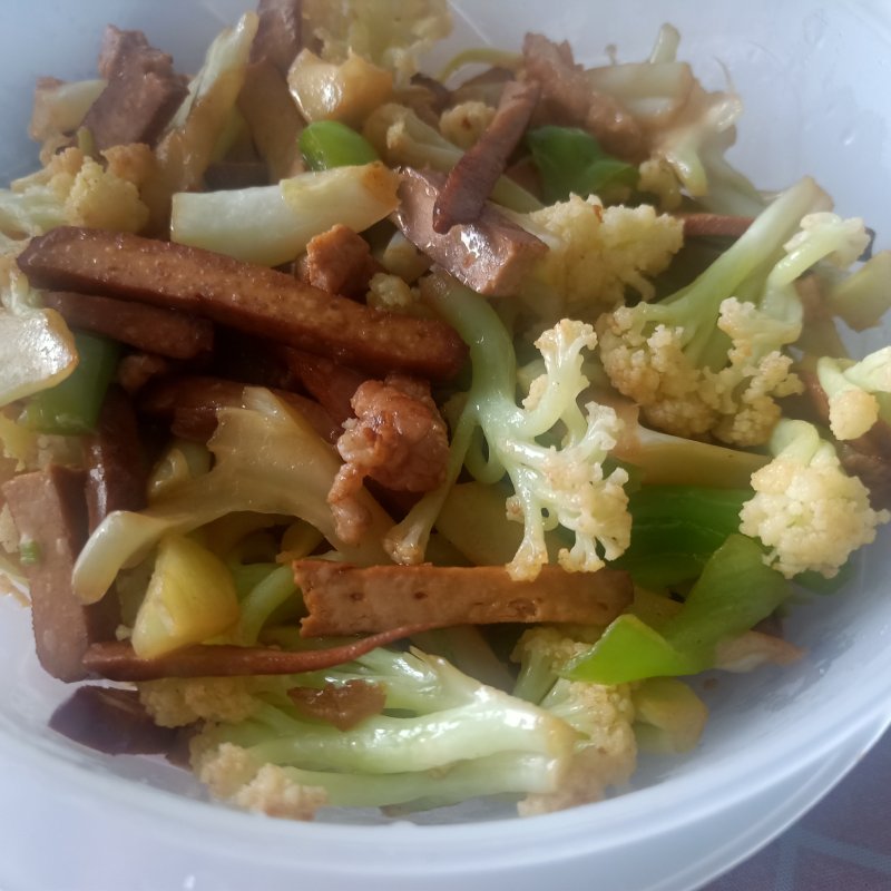 5:倒入花菜 适量的香醋,再炒2分钟。