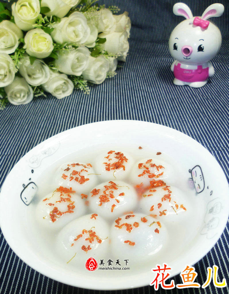 9:最后,煮好的汤圆盛入碗里撒上一些糖桂花,就可以吃了。