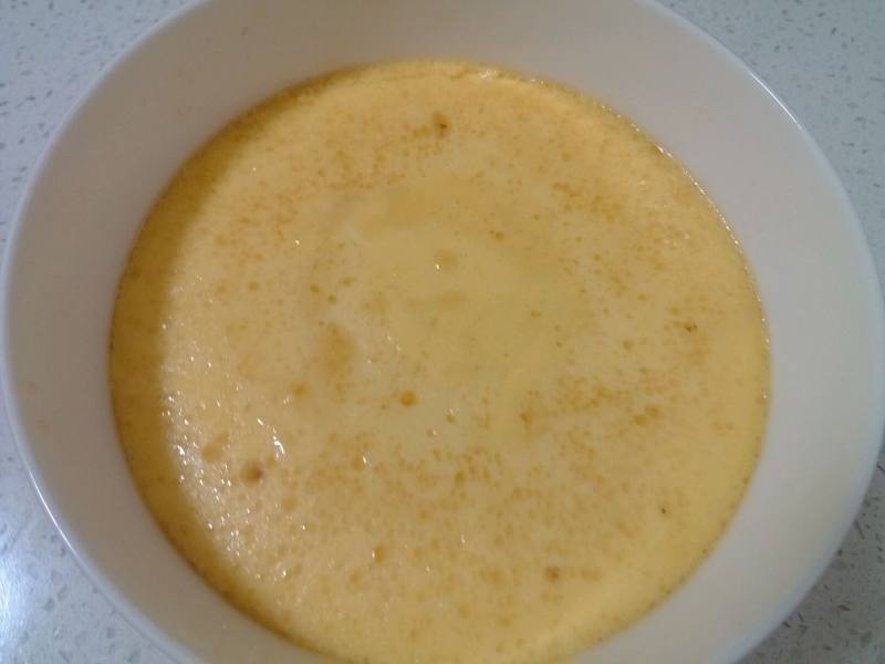 1:1:两个鸡蛋,加水至碗满,用筷子搅拌,直到均匀出现气泡。
