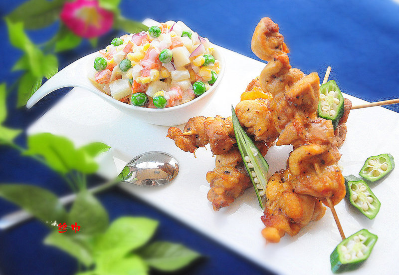 6:然后放入预热烤箱,200度上下火,烤30分钟即可。(烤10分钟后可将串翻一次)