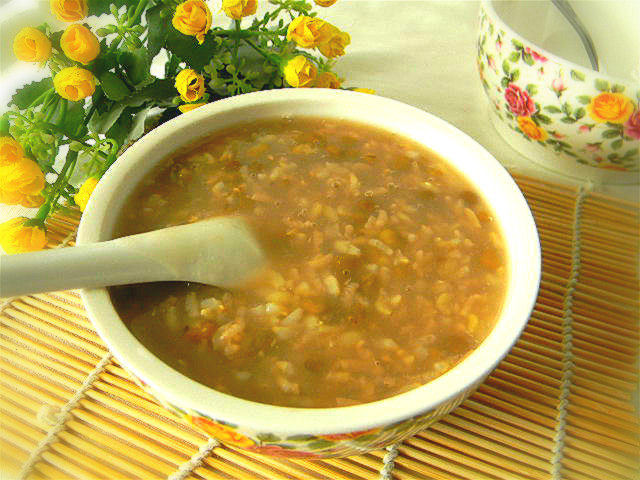 3:加入糯米小火煮至绿豆、糯米开花,放入百合略煮。