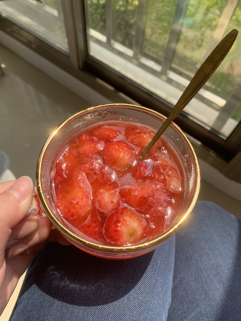 7:放凉后加入草莓放冰箱冷藏3小时就可以吃了