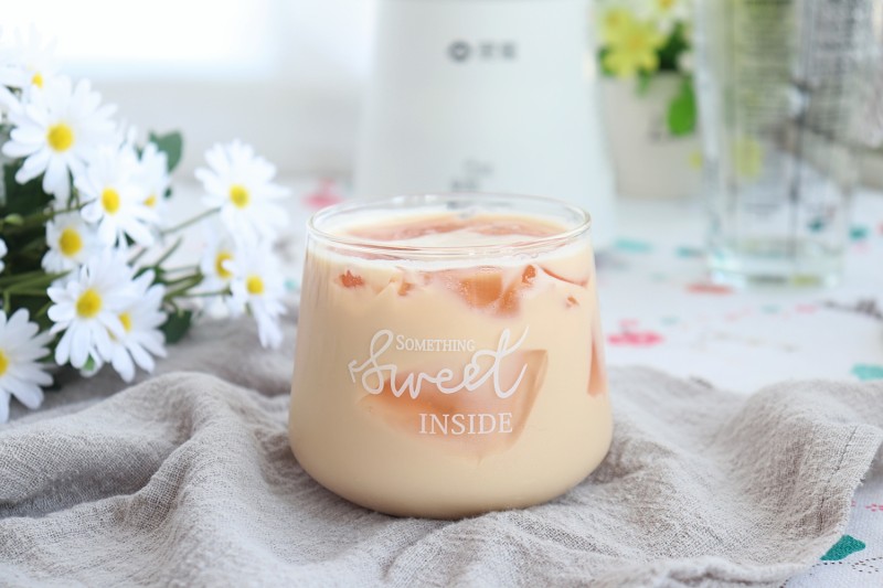 12:最后倒入备好的玻璃杯内,清新凉爽的奶茶就做好了。