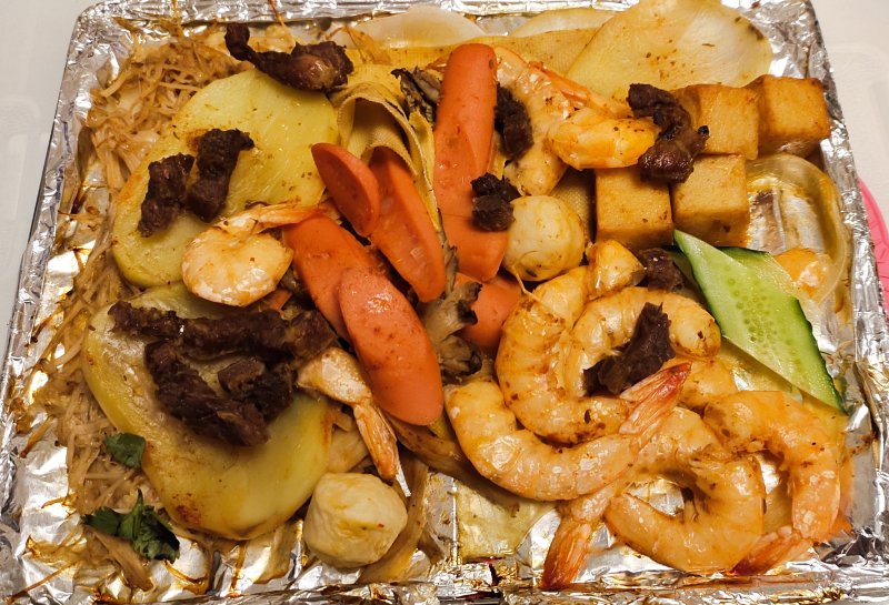 土豆适量;虾适量;其他肉类适量;蔬菜适量;鱼豆腐适量;
