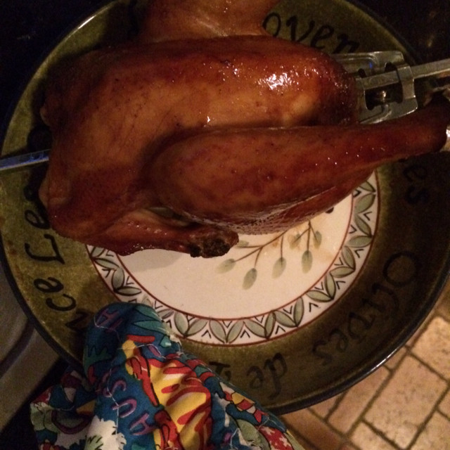 9:放进烤箱上下火烤一小时,途中刷油翻面。