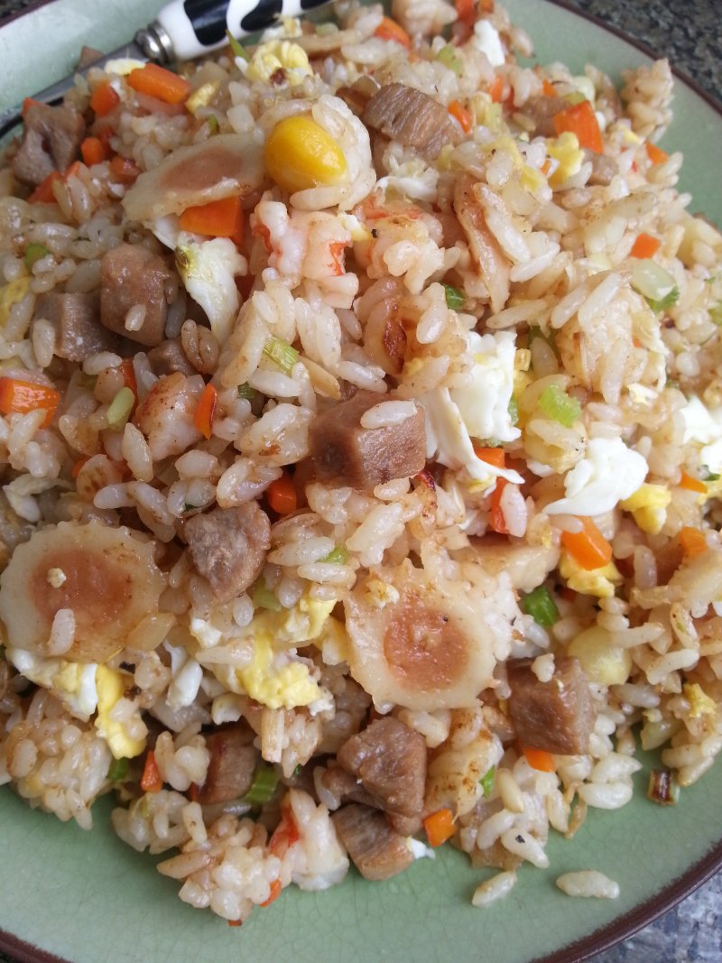 米饭适量;鸡蛋1个;牛肉粒适量;蔬菜适量;虾仁适量;