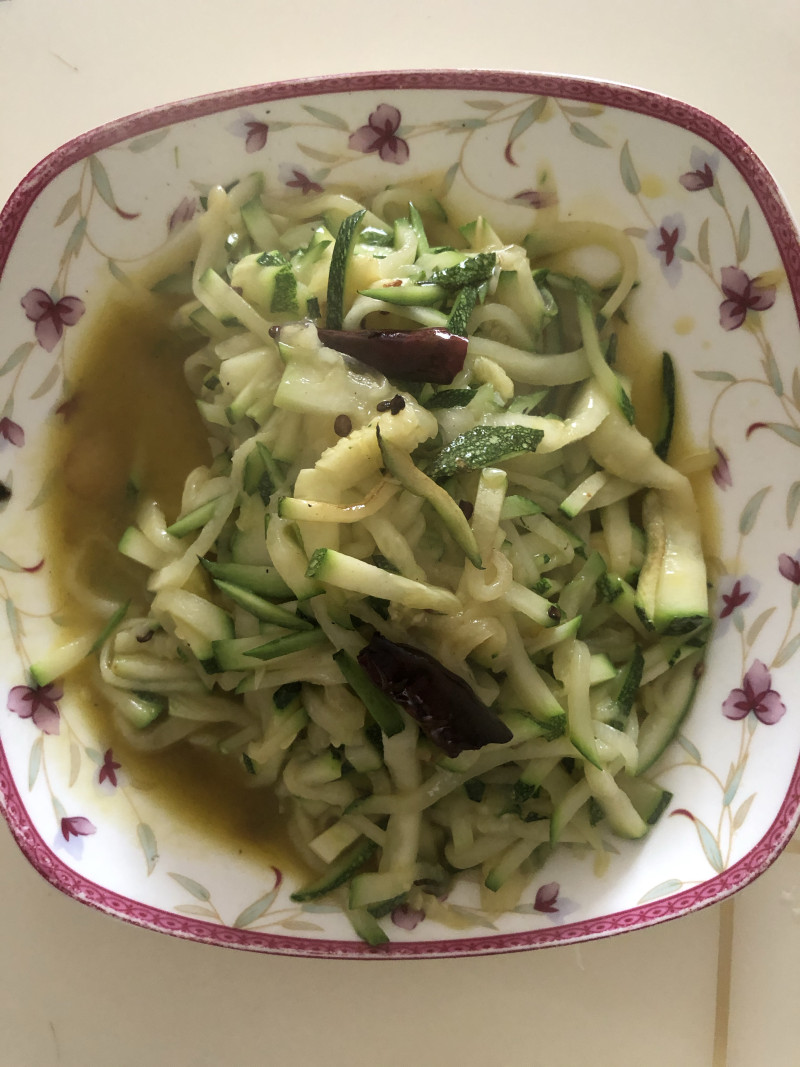 1:嫩南瓜先切成片,再切成丝。