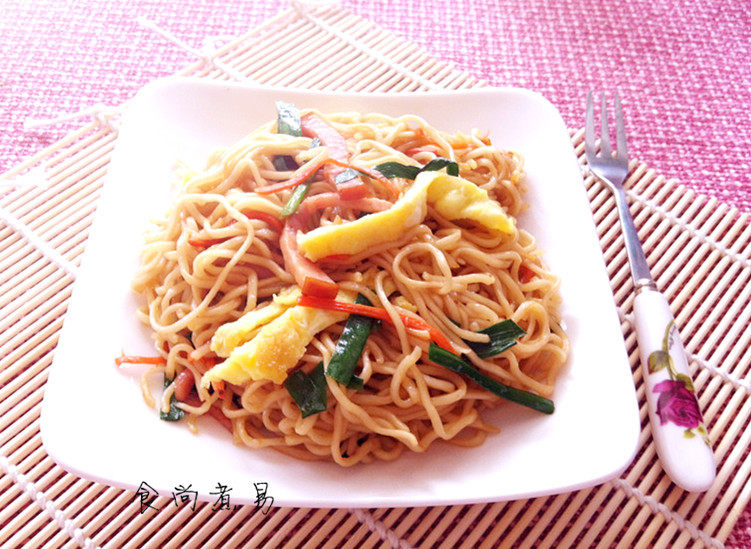 加盐时一定要看清自己炒面的量,如实在拿不准就别在酱汁里加盐,做好后试试味道,不够时加点特级酱油即可,当然也可以拌辣椒酱吃。韭菜加上后不可久炒,加热时间过长韭菜颜色和口感都大打折扣哦。