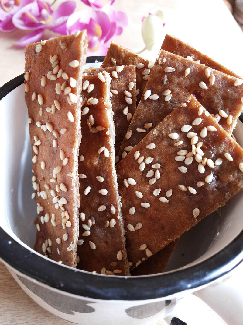 1,酱油类的调料不要放太多,烤出来容易发黑。2,压的薄一些,烤出来颜色好。3,烤箱是15L的,这些份量烤了两盘。4,烤箱温度和时间仅供参考,喜欢吃有嚼劲的可以延长烤制时间。5,蜂蜜水就是蜂蜜加少量水稀释。