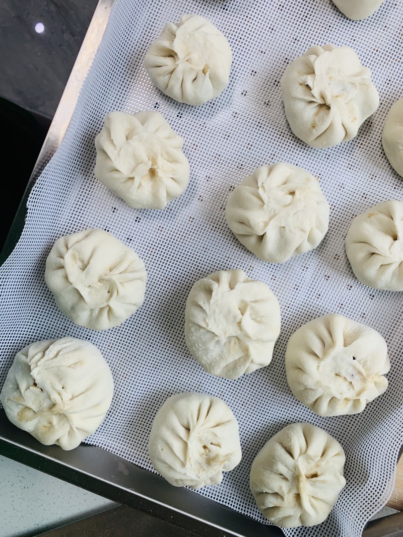 12:包好的包子盖上湿布饧发15分钟左右,锅中烧开水后,装入锅中,大火蒸16分钟,成熟后取出即可。