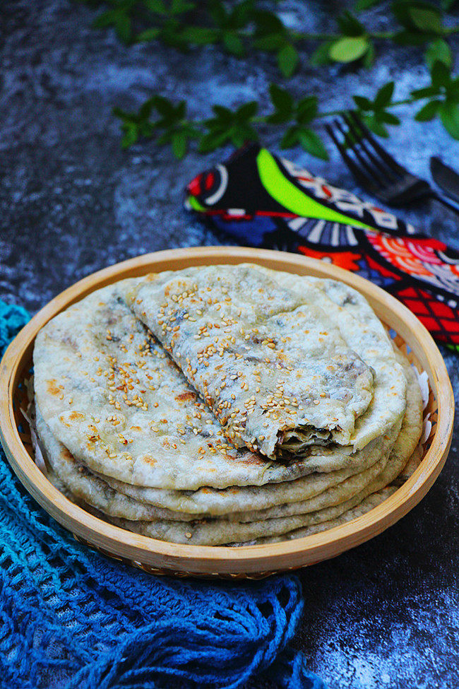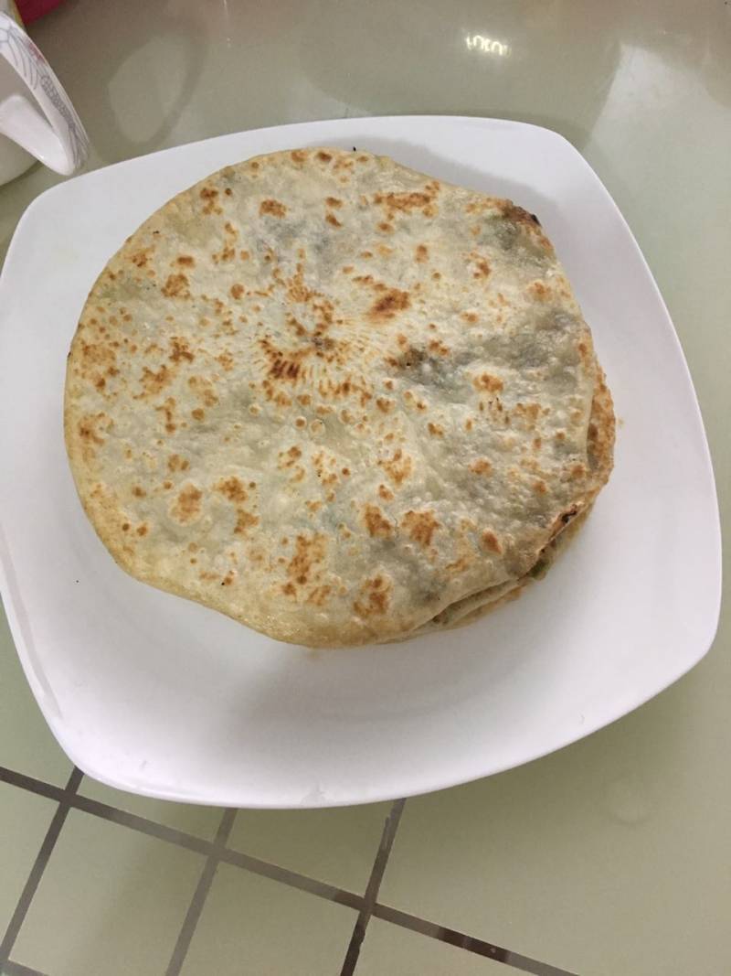 10:待一边烙至金黄后,翻面同样烙至金黄色,即可。