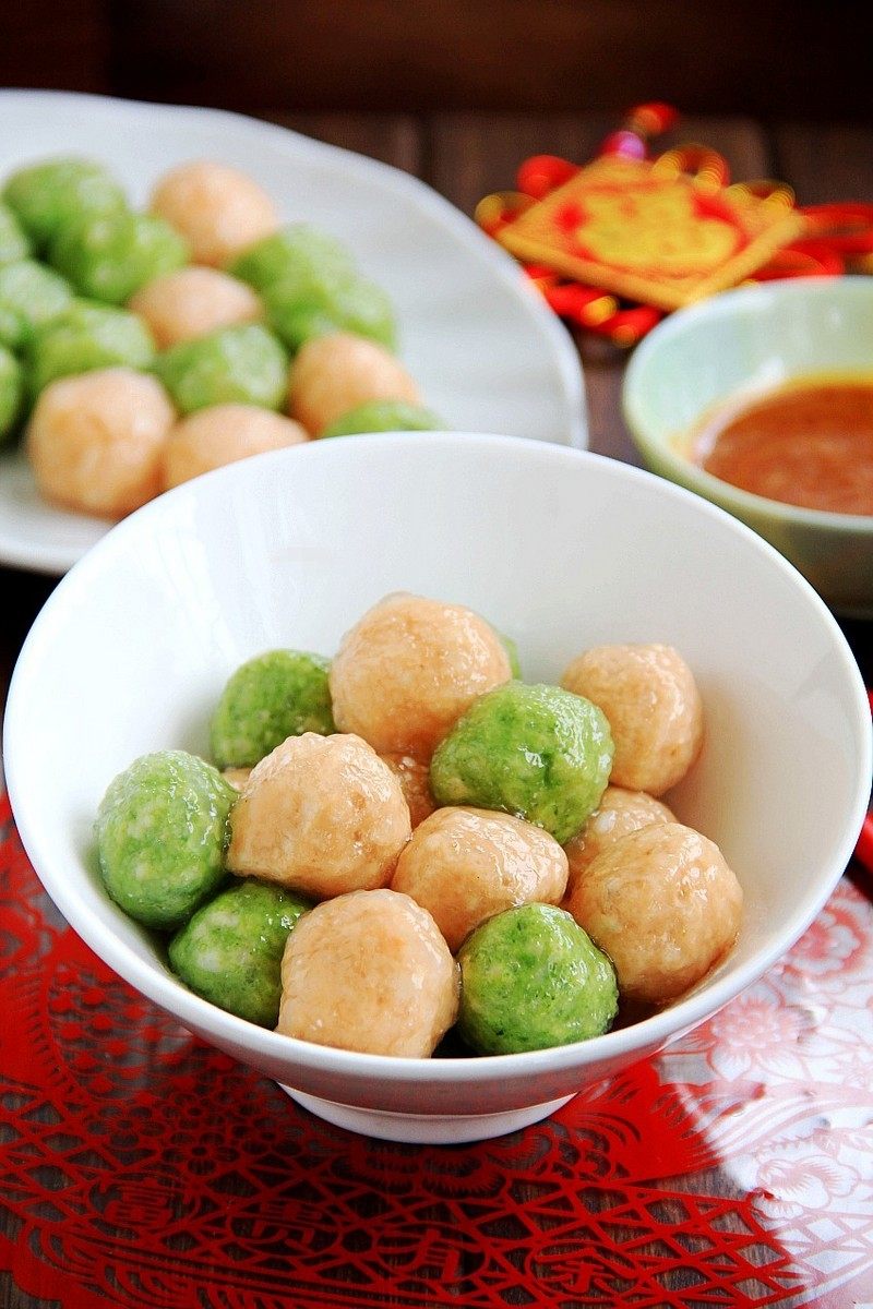 15:取一小碟,用芝麻酱,红油,味极鲜酱油调成汁,丸子粘着汁吃,别有一番风味哈