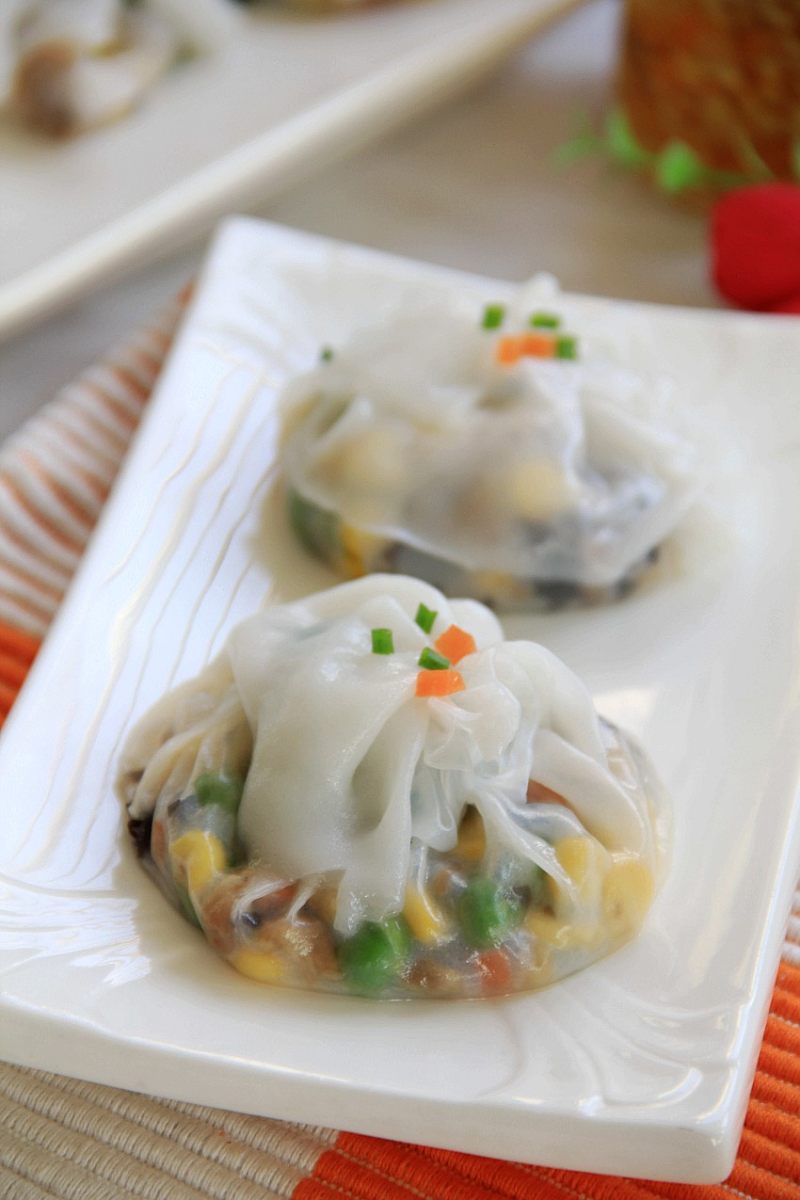 干肠粉适量;玉米适量;木耳适量;香菇适量;豌豆适量;胡萝卜适量;韭菜适量;