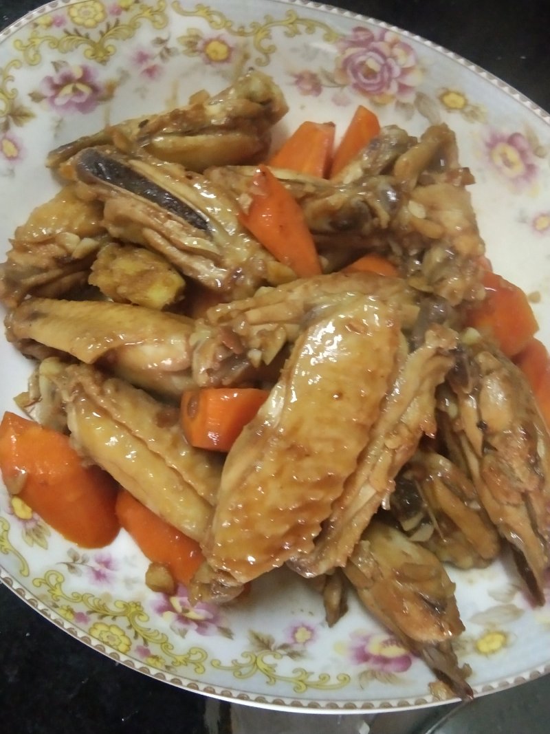 1、鸡翅选用新鲜就可以不用的飞水,冰冻的要!2、不喜欢吃红萝卜的可以不放或可以放其他的!