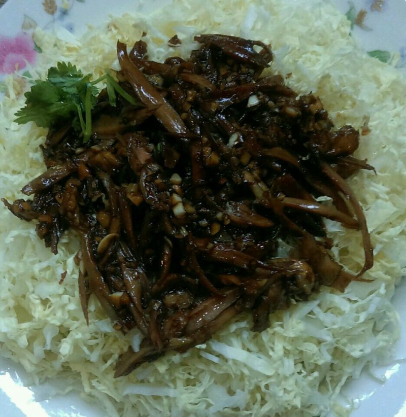 1:准备原材料:白菜,大蒜,熟鸡肉,酱油,食用油