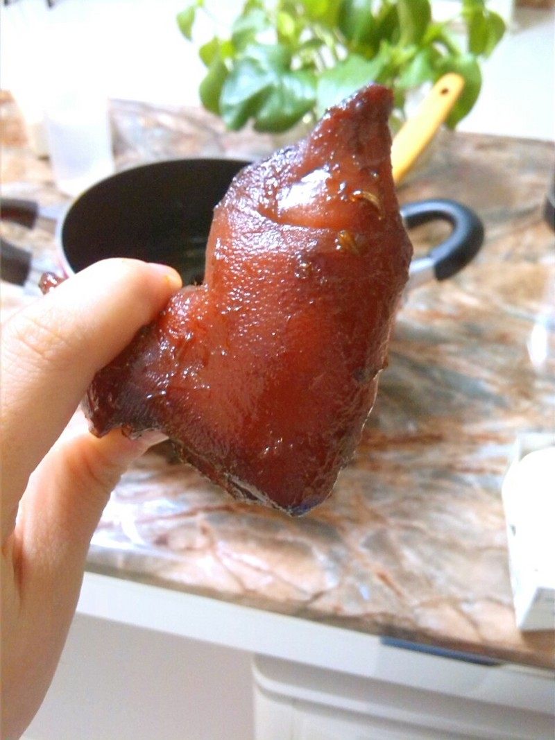 4:大火煮开转小火煮一个半小时。根据自己锅子的情况,用筷子戳一下猪皮很软但是不烂就好了